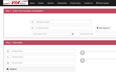Website Development Lone Star Coaches Website Development Tri-City Charter, Inc. eTicketing Solution Allen Tours - Go Harlem Express Website Development AA Transportation Website Development Jason's Transportation Website Development PDS Transportation Website Development Castle Coaches Shopping Cart Solution Steelman Equipment Website Development Steelman Equipment Website Development Dozer Rakes | Steelman Equipment eTicketing Solution AFC Transportation eMotorcoach© Solution AFC Transportation Customized eTicketing Solution AFC Transportation Android Solution AFC Transportation Website Development VIA Trailways eMotorcoach© Solution VIA Trailways Android Solution VIA Trailways eMotorcoach© Solution Samson Trailways Android Solution Samson Trailways Android Solution Royal Excursion Website Development Salter Trailways Website Development Eclipse Charters and Tours eMotorcoach© Solution Eclipse Charters and Tours eTicketing Solution ePassenger© Product Line Android Solution iPassenger© Product Line iOS Solution iPassenger© Product Line Corporate Shuttle Solution ePassenger© Product Line Casino Shuttle Solution ePassenger© Product Line